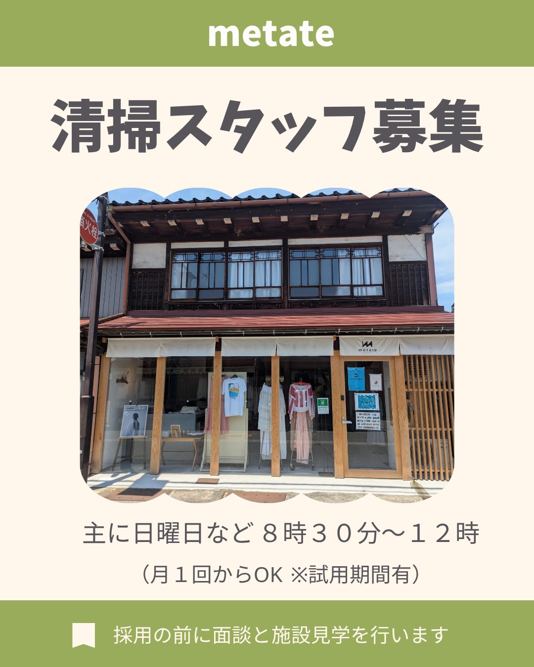 metateでは現在、清掃スタッフを募集しています。